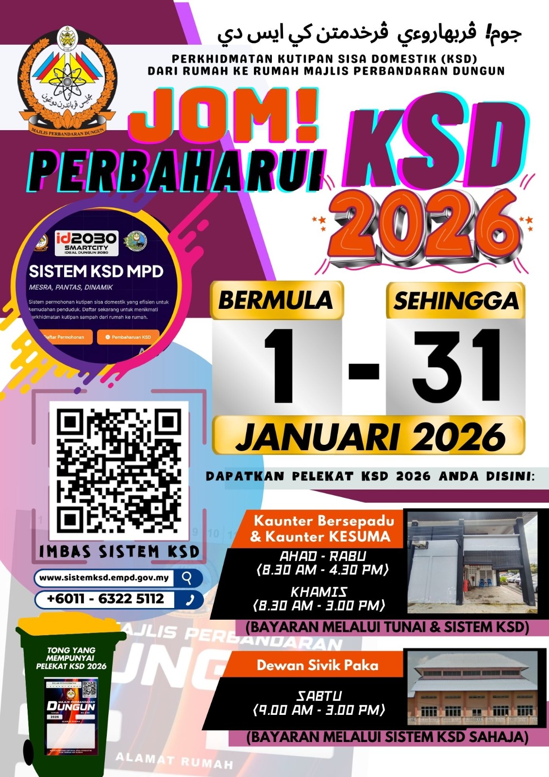 PERKHIDMATAN KUTIPAN SISA DOMESTIK DARI RUMAH KE RUMAH TAHUN 2026 KINI DIBUKA!